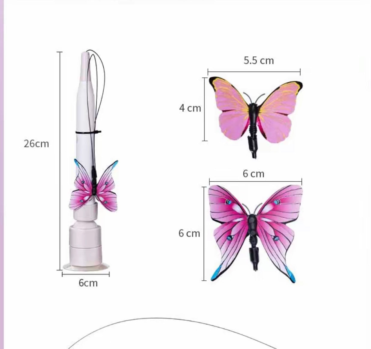 Para ativar a diversão, insira 2 pilhas AA na parte inferior do brinquedo. A borboleta gira automaticamente, seguindo os movimentos do seu gato e estimulando seu instinto de caça.