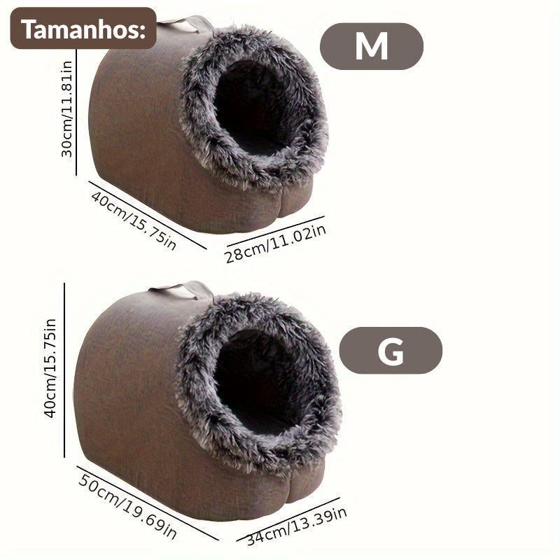 G: 50 × 40 × 34 cm — indicado para pets de até 10 kg.